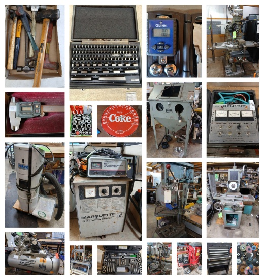 Tools, Heater, Gauges, Bits, Clamps, Grinders, Sanders, Testing Equipment, Sorters, Motors, and much MUCH MORE!
