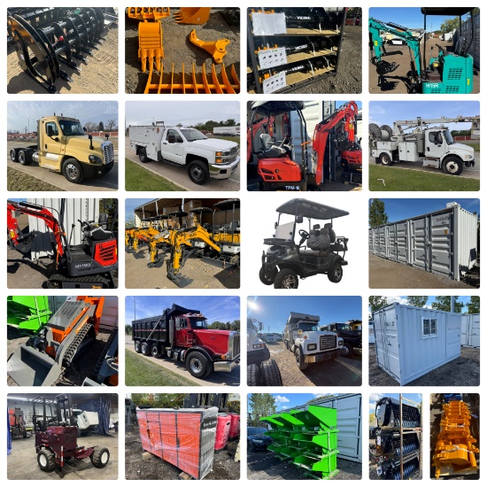 Cars, Trucks and Equipment: MORE THAN A DOZEN New 2023 Mini Excavators (Gas & Diesel), New AGT Industrial Co LRT 23 Hydraulic Mini Stand-On Skidloaders, 1999 International 9100 Tractor/Truck, 2015...