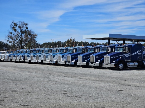 Over 40 Kenworth Trucks pre Def all with Cat Engines and 13 Speed Transmissions and 100 Semi Trailers, Flat Beds, Extendable Trailers, Van Trailers, Inop Trucks, shop supplies and Extra New...