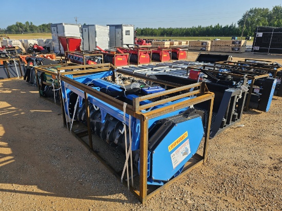 SELLING WITH NO RESERVE!! OVER 500 LOTS OF SKID STEER ATTACHMENTS, METAL SHELTERS, CARPORTS, PORTABLE BUILDINGS AND MORE.