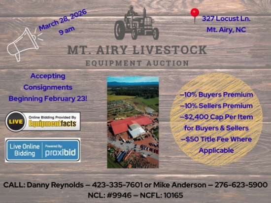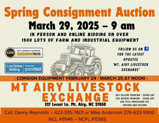 SPRING CONSIGNMENT EQUIPMENT AUCTION!